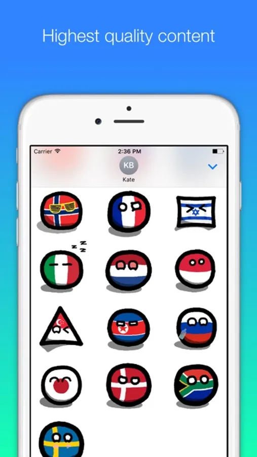 Internet comic phenomenon now on your phone! Spice up your conversations with 22 hand crafted balls representing countries of the world. Laugh at stereotypes, dwell on your national insecurities and mercilessly mock your foreign friends! Each countryball has its own unique personality so that you can express your emotions in a sophisticated way. Show the world how good you know these nations!