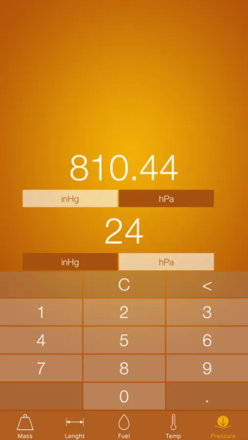 • Inch of mercury (inHg) -- Hectopascal (hPa)
