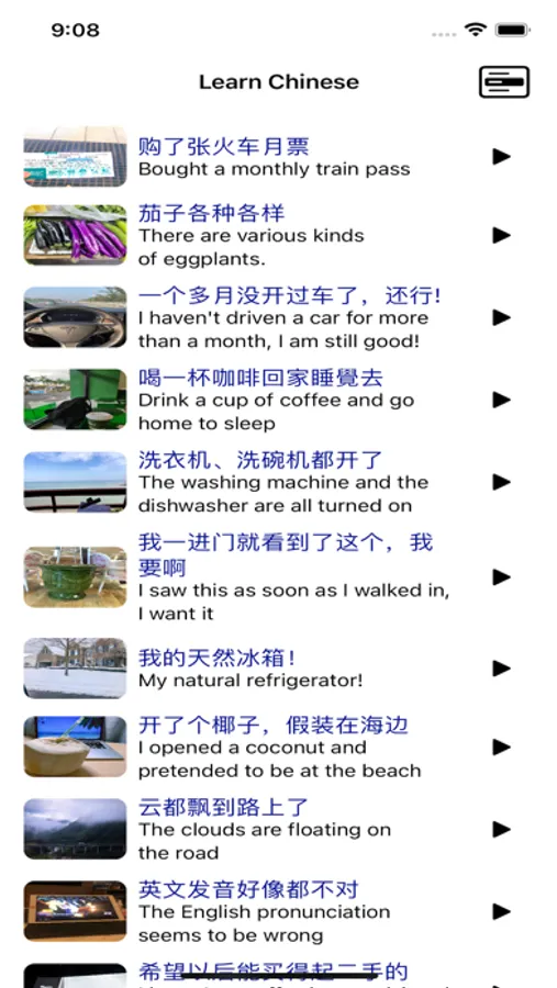 このアプリでは、いくつかの簡単な中国語のフレーズを学ぶことができます。
