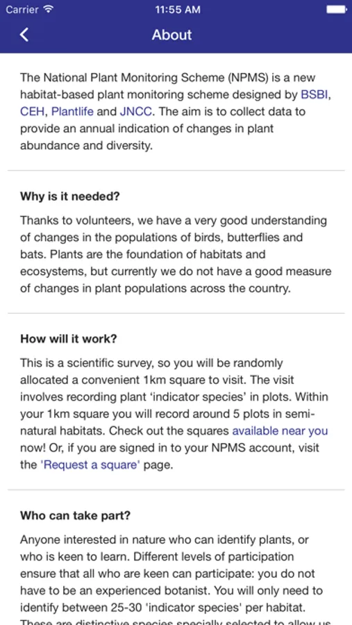 The National Plant Monitoring Scheme (NPMS) is a new habitat-based plant monitoring scheme designed by BSBI, CEH, Plantlife and JNCC. The aim is to collect data to provide an annual indication of changes in plant abundance and diversity.
