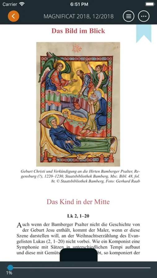 MAGNIFICAT appears monthly. The app can be downloaded free of charge. Within the app chargeable downloads are possible. The downloaded issues can also be read offline.