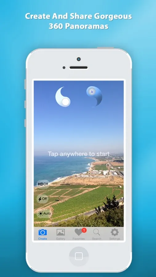 Tap the screen to start. Rotate left or right. Wait for the symbols to meet and wait for the picture to snap. Continue rotating until you make a full turn.