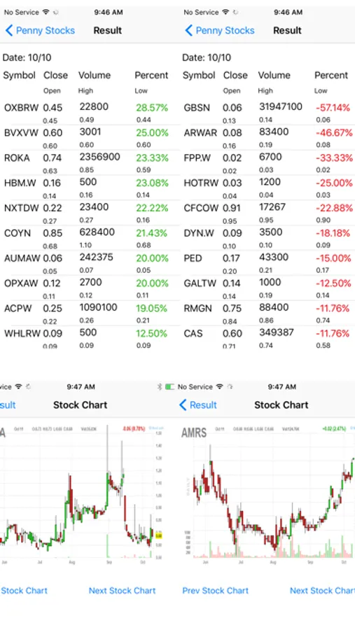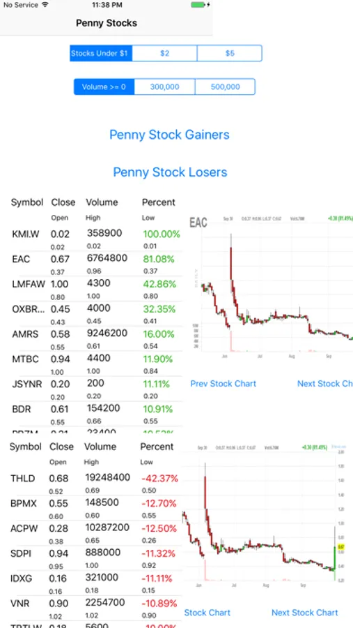 NOTE: Penny Stocks App is based on end of day data, not live data.