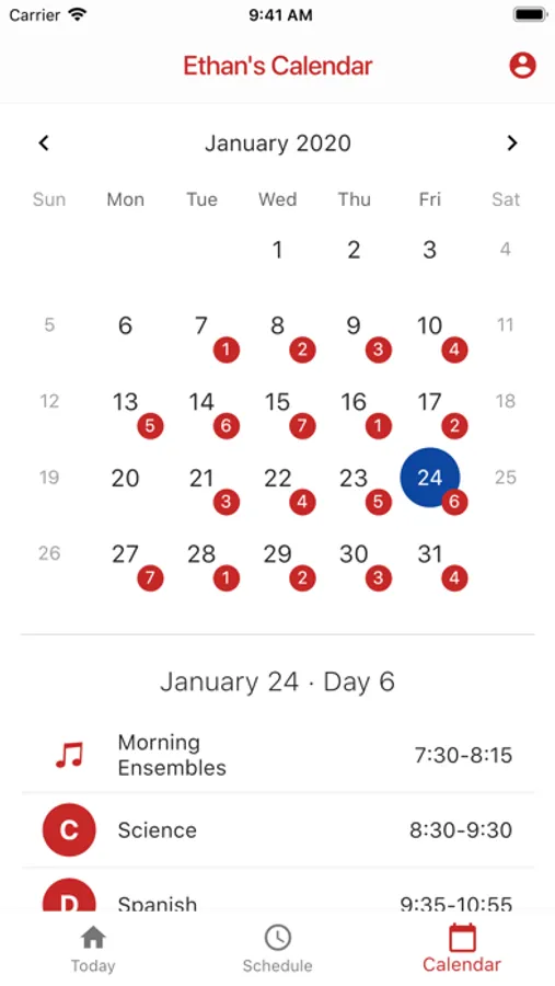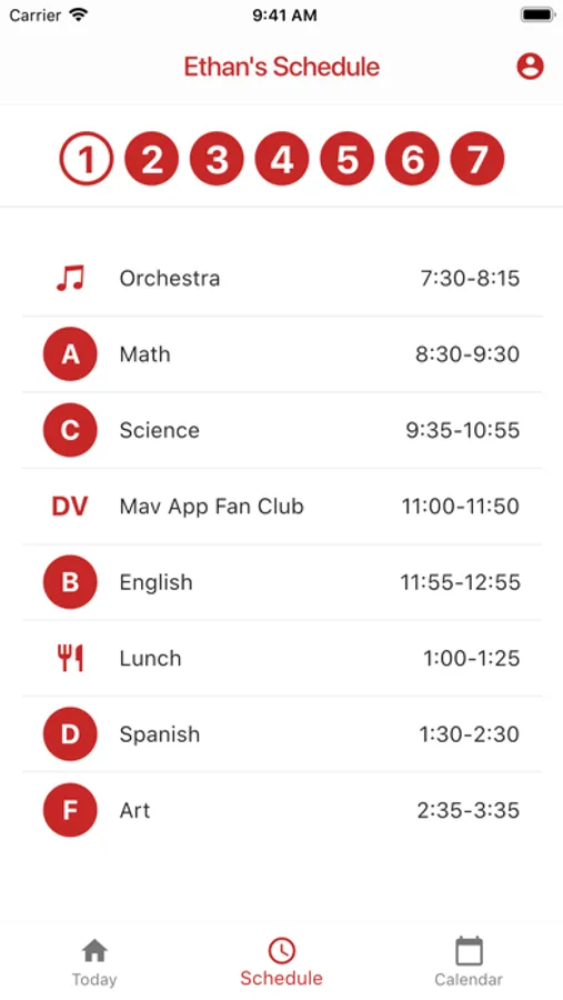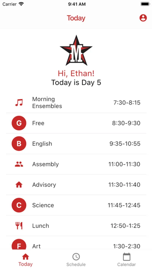 Mav App - your perfect companion for the schedule at St. John's. Mav App displays multiple custom Middle and Upper School schedules for Days 1-7 and includes the complete school calendar. View and manage your assignments, pulled directly from the SJS website. Add ensembles, clubs, and tutorials to your schedule with customizable early morning and da Vinci blocks. The interface is complete with the red and black Maverick theme. Mav App includes an Apple Watch extension to view your schedule right from your wrist.