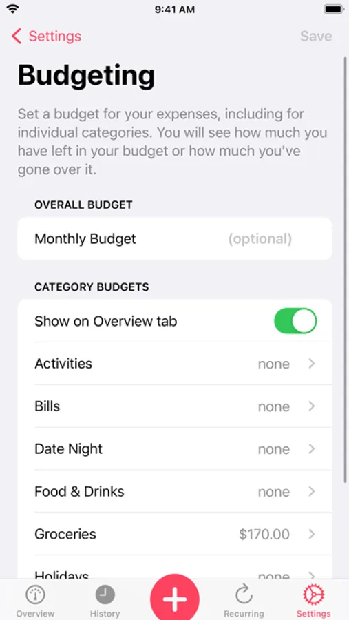 Make sure you don't overspend for the month, including on specific categories