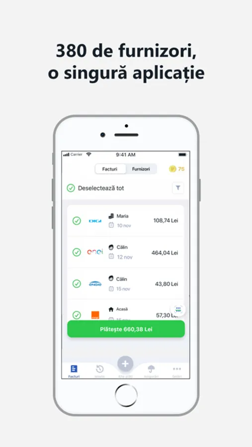 • primești notificări ca să nu uiți de facturile scadente