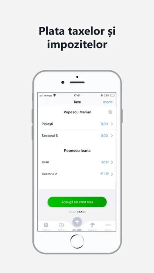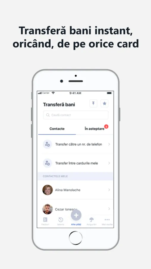 • după sincronizarea conturilor plătești toate facturile în sub 5 secunde. Cu un singur tap!