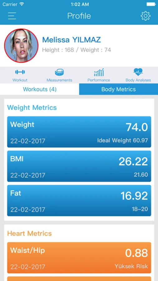 Metrics, Insights and Performance Metrics: Enter your metrics periodically and measure your performance. With the Measurements you receive, you can analyze the metrics like WEIGHT, VOLUME, HEART, HEALTHY AGE and DIABETES.