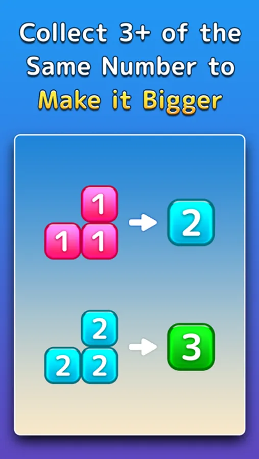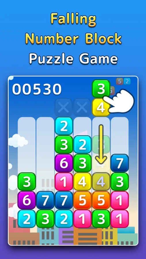 ·Move drop the number block down with your fingers and gather 3 same numbers to get bigger!