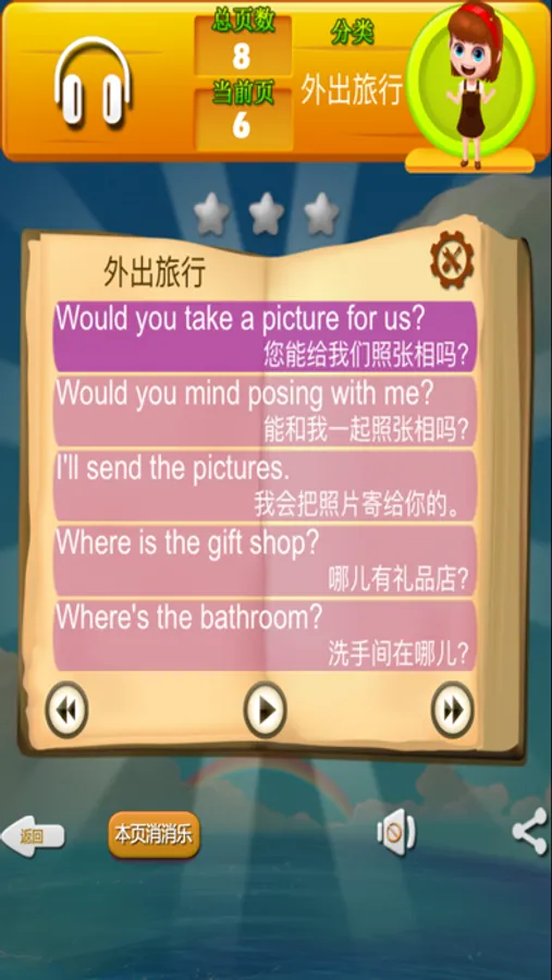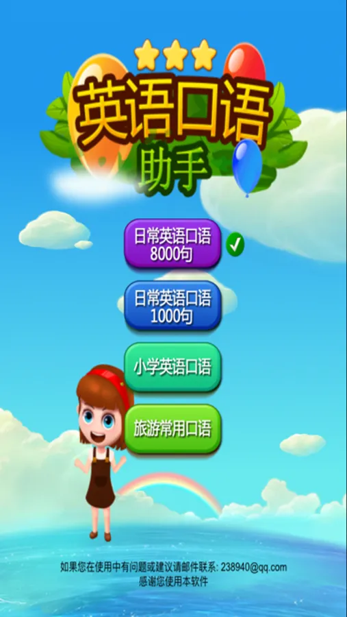 1. 包含【小学英语必须掌握的口语】,【出国旅游常用的口语】,【日常英语口语】等,您可以根据自己需要切换。