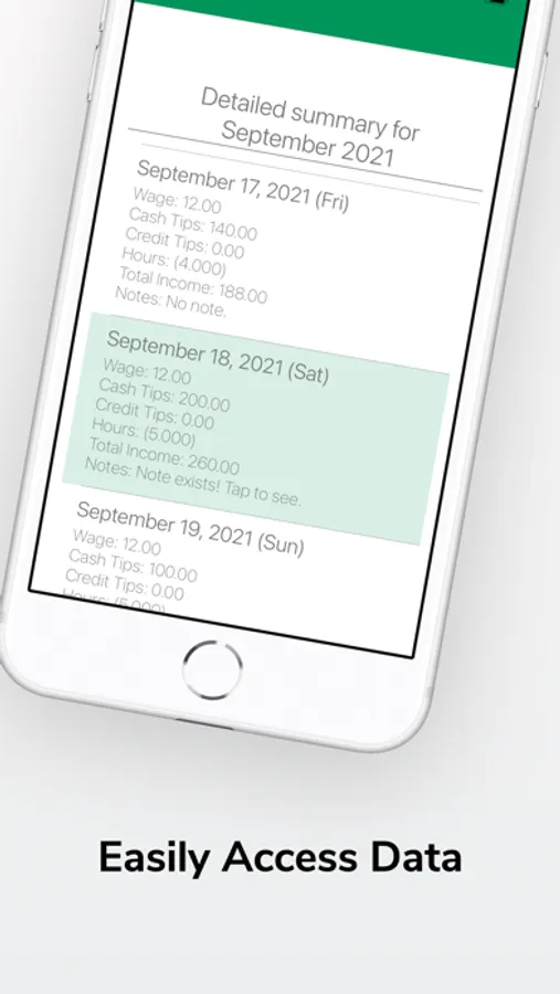 With Tip Tracker, you can easily track your hourly income, hours worked, and tips.