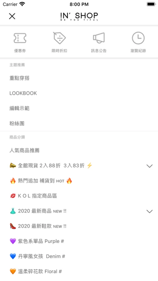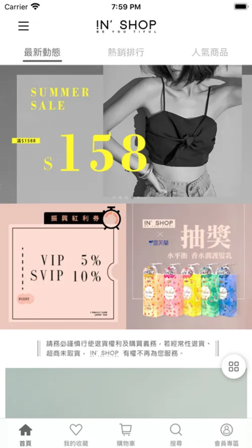 IN SHOP提供每季最新、豐富多元流行女裝,輕鬆找到並自在走出妳最喜愛的專屬魅力。優質的服務讓妳讓女孩們盡情享受美好的購物時光。