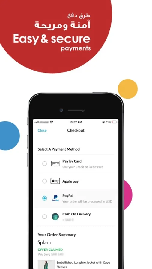Use Visa & MasterCard credit or debit cards, Cash on Delivery, Apple Pay or Shukrans to easily pay for what you love.