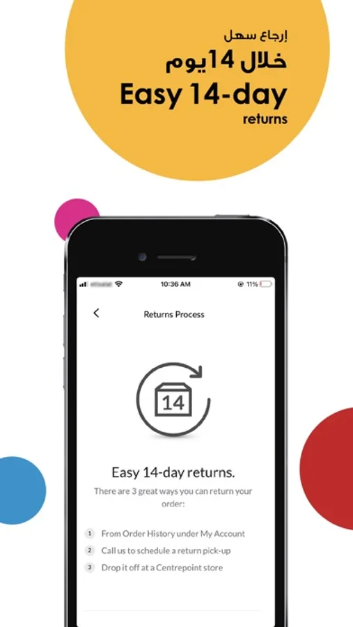 يمكنك إرجاع المنتج بسهولة خلال 14 يوم. يمكنك حتى إرجاعه إلى أحد متاجرنا.
