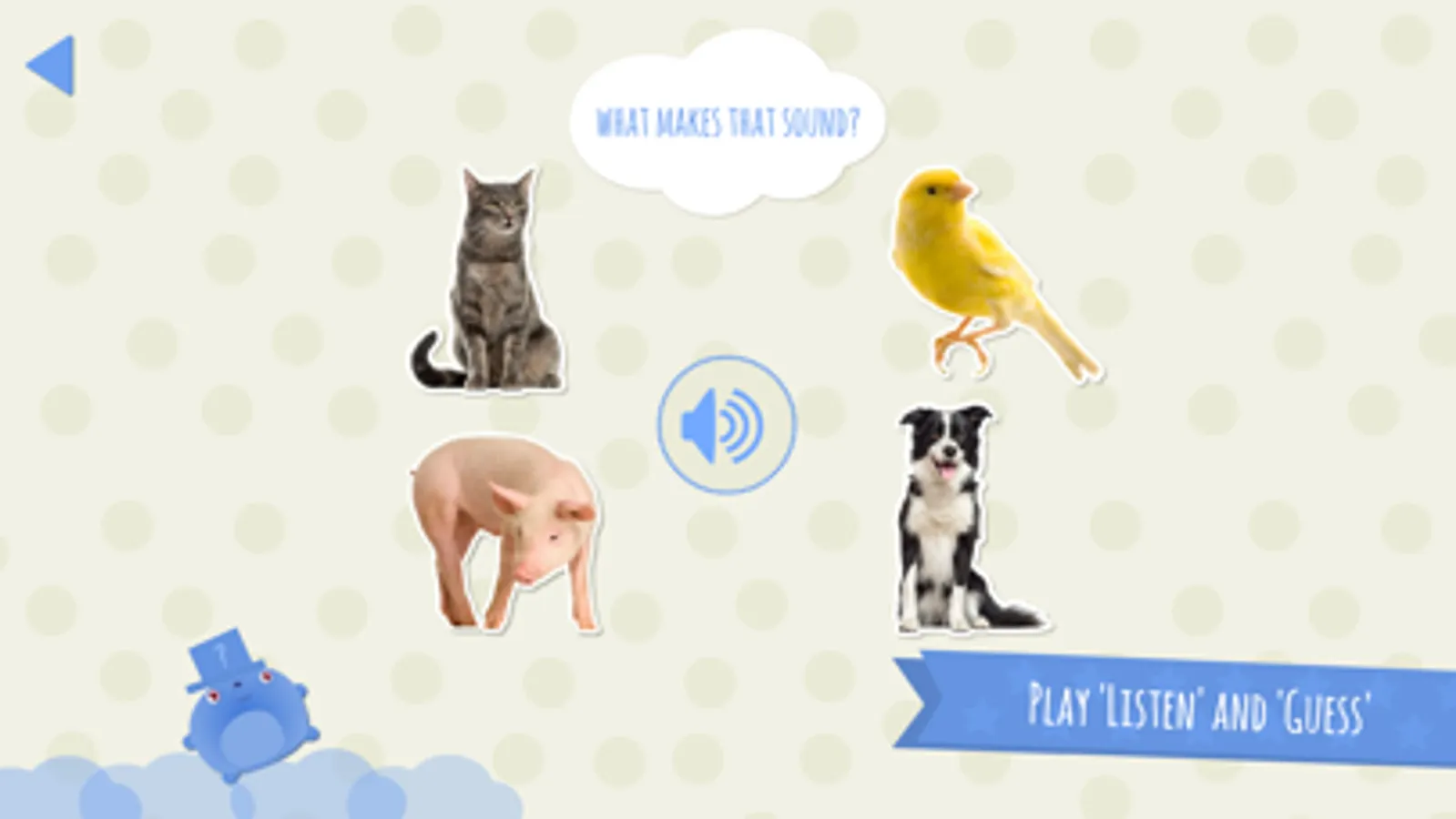 Domi Domi Listen and Guess is an educational app for kids 2-4 years old. Your child will learn to recognize animals and objects by the characteristic sound they make. Playing with lovable Domi Domi, children learn new words and start to associate pictures with their names and their sounds.