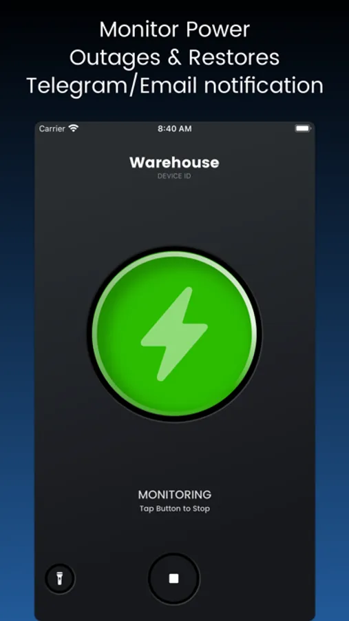 I am a little app that reports any power outage or failure. Live, with alarm, Telegram messages and emails.