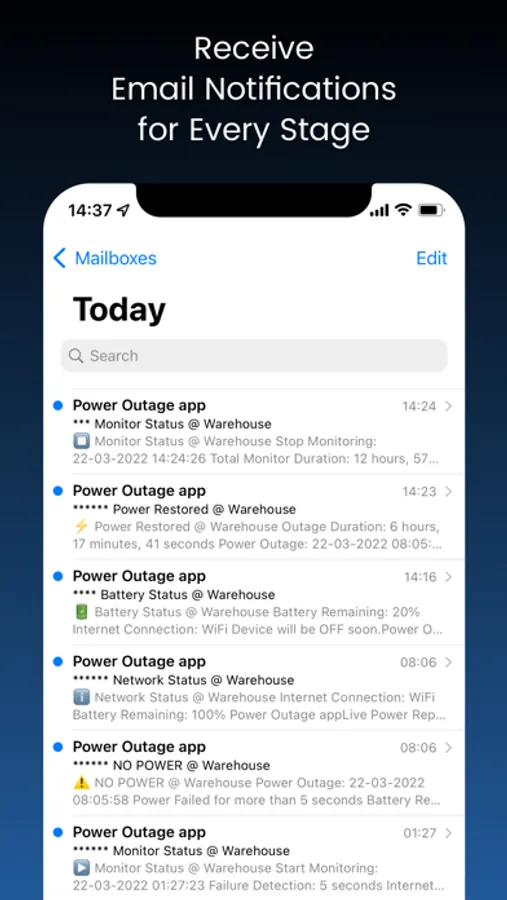 • Will send you an email when power has failed