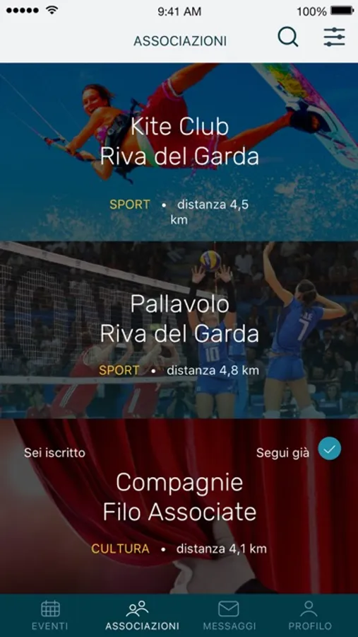 - ASSOCIATO: è iscritto a una o più associazioni del territorio, e quindi riceve le notifiche push e le e-mail riservate ai soci