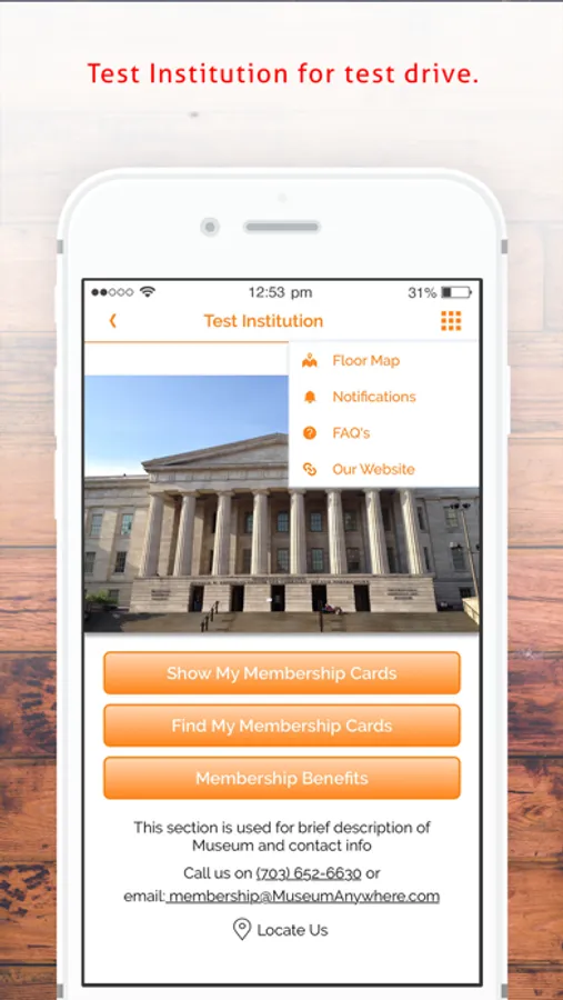 If you do not find your institution when you open the app, please contact their membership staff to provide you eMembership card facility. eMembership cards can only be downloaded for the institutions who have signed up with MuseumAnywhere to provide you digital cards on smartphones.