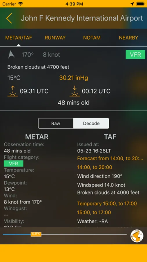 IMPORTANT NOTE: With this App we display all the AVAILABLE weather and forecast data provided by the aviation weather Center and the National Centers for Environmental Prediction (NCEP). If you don't see METAR or TAF data, or anything else, please understand it is not our fault but a lack of information at the source.