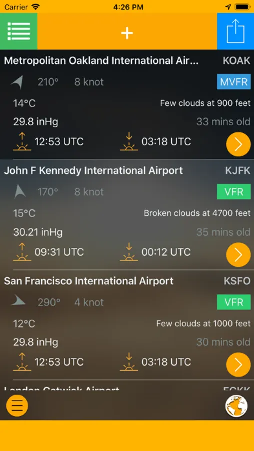 Get real-time airport weather data (Aviation WX/METAR/TAF/NOTAM) directly to your iPhone and iPad. Search for weather stations and airports all over the World (FAA, EASA,...). Easy Aviation Weather - WX is a quick and simple solution to make your flights as safe as possible.