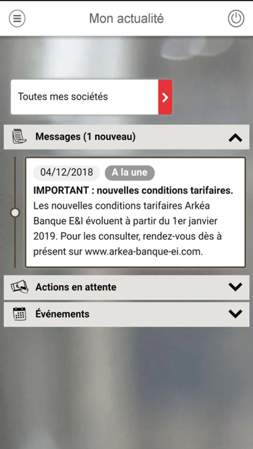- Suivez en un coup d’œil votre actualité bancaire en retrouvant sur votre page d’accueil vos évènements Arkéa Banque E&I, vos messages d’information et vos actions en attente.