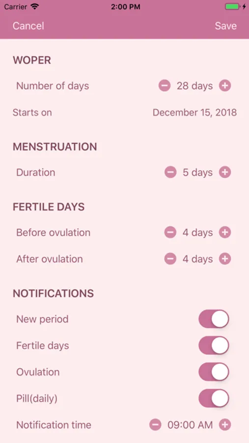 WoPer is a simple application to track women's retention period and information about the use medicines and sexual intercourse.