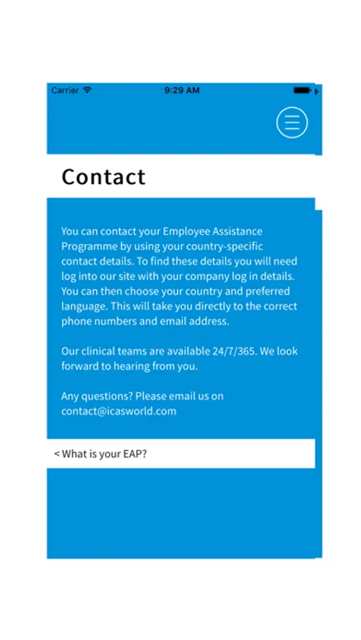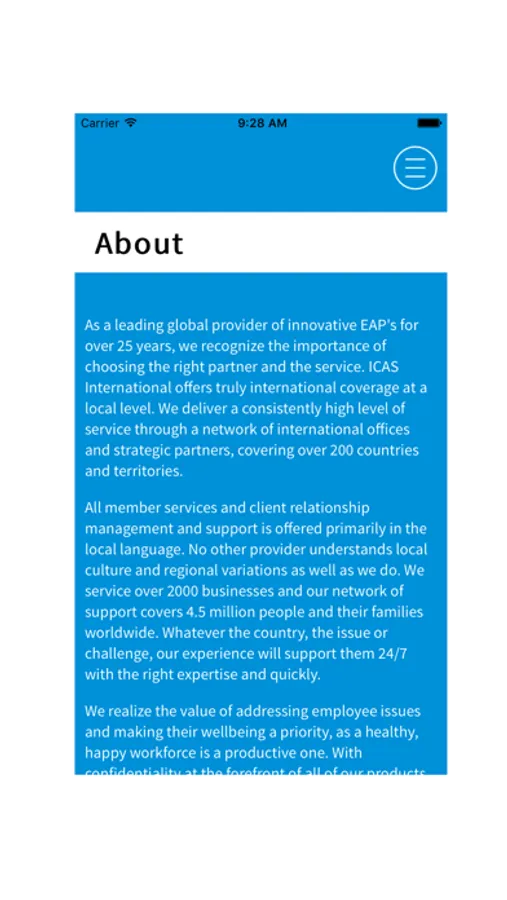 The ICAS Lifestyle iOS app is new employee app the where aim of the bespoke ICAS Health & Wellbeing Programme is to enhance your company’s health and wellness strategy. The primary goal of the Wellbeing Programme is to inform, empower and provide employees with the skills to take ownership of their wellbeing. The Programmes support your employees with the necessary interventions and self-management tools to better manage their lifestyles, and to make informed decisions regarding their health.