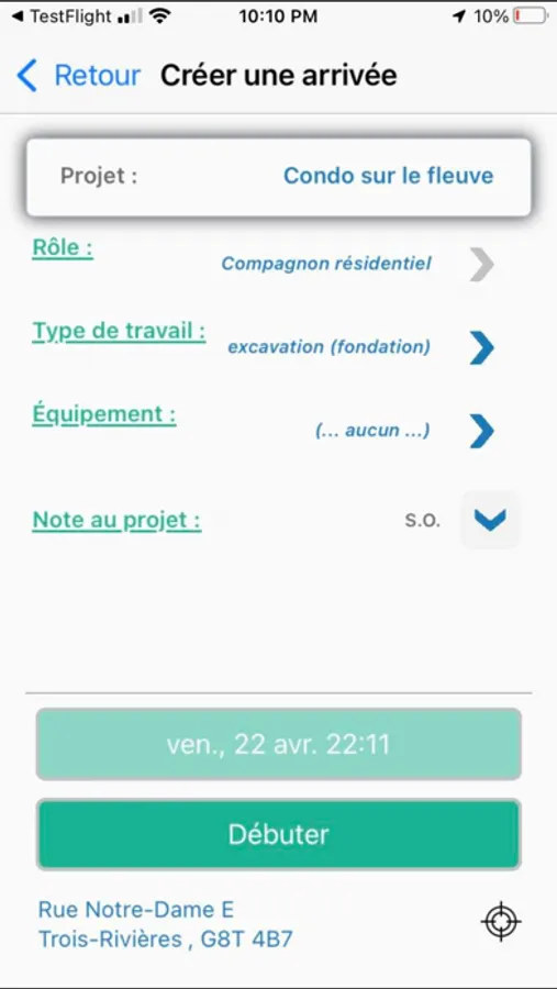 - Signaler vos arrivés et départs d'un projet/chantier/client