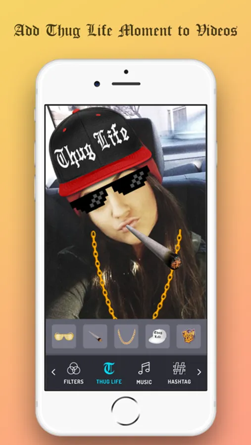 Shoot a cool image or choose from the gallery and it will become an awesome thug life moment instantaneously for FREE.