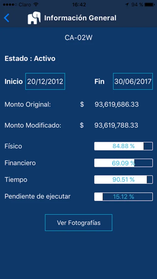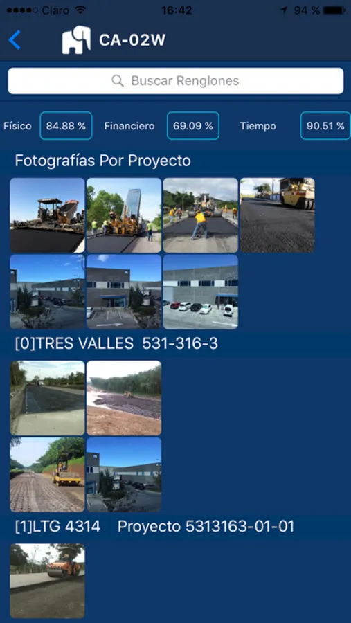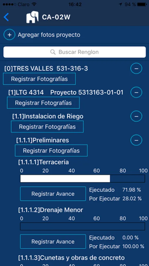La aplicación consulta el avance de proyectos y realiza el registro de fotos, bitácoras y avances.