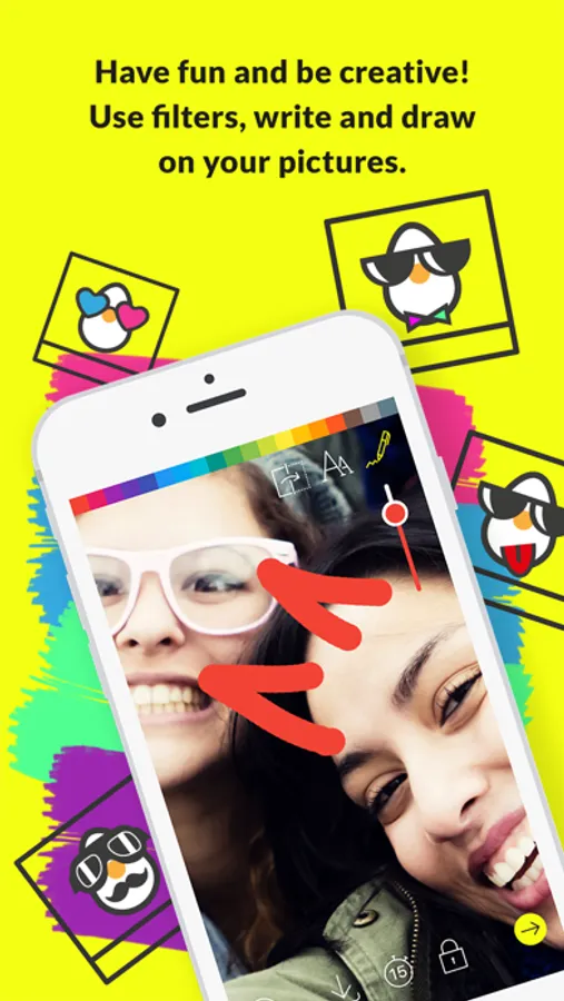 Have fun and be creative with your messages by using our exclusive filters and even write and draw on your pictures!