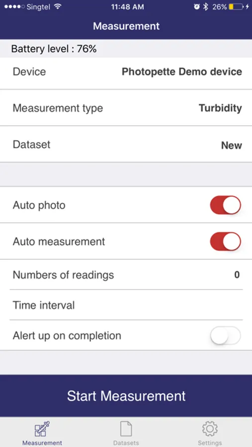 The app is designed to work with all models of Photopette® devices. Get started by powering up the device and connecting it to the app via Bluetooth®. The list of all the supported applications by your device will automatically load in the application menu. Select your application type along with dataset to store the measurement data and you’re ready for measurement.