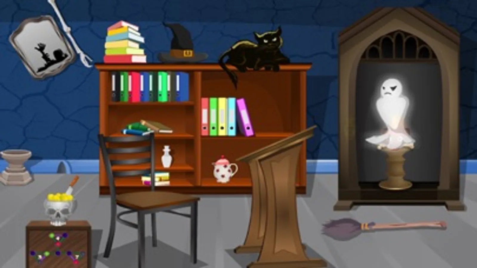 In this escape game, assume that a ghost has been confined in a coffin in this Halloween themed house. You need to help the ghost escape from the house by opening up the coffin. Relate objects in the way and solve puzzles to achieve your goal. Have fun!
