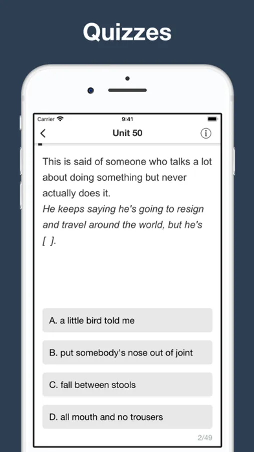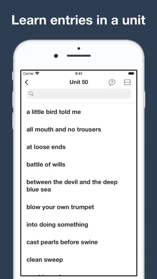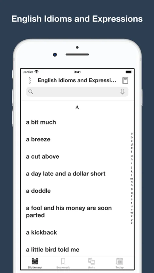 This app provides a searchable, browsable version of English Idioms and Idiomatic expressions.