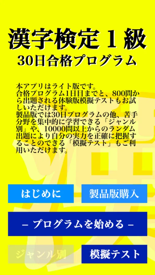 ■本アプリは体験版です。合格プログラム1日目の途中までお試しいただけます。製品版は10000問以上の問題を収録しております。
