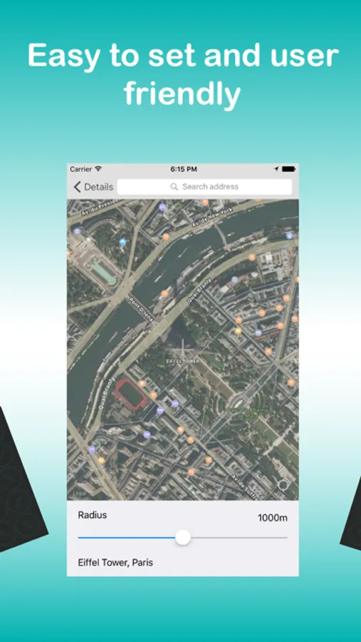 To setup the alarm you select a location where you are traveling and the distance how far ahead you want to be notified. You can choose either the battery economy mode or the precision mode. The former one uses very little of the phone battery but might take up to 5 minutes to deliver the notification after crossing selected boundary. The precision mode uses real time GPS data - it alerts you immediately after crossing the boundary but it is more battery costly.