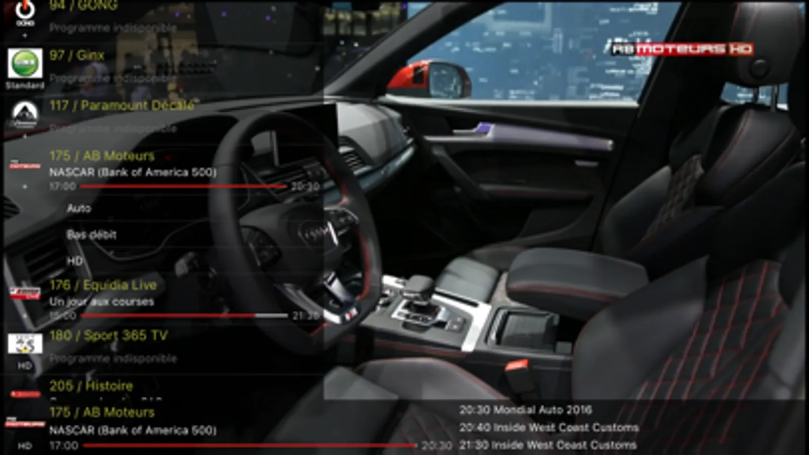 Pour regarder le Multiposte de Free, les différentes sources TV (auto / bas débit / HD / TNT...) sont affiché d'un simple toucher.