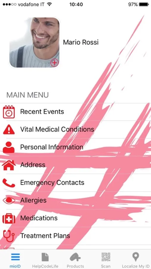 The app mioID allows you to manage your profile, editing in real time your information. Through the app you can register, you can connect more than one code to your profile and you can upload your documents. mioID gives you the ability to update data as: recent events, emergency contacts, therapeutic plan, medications, documents and more. Also there is a reminder system for those who use medicaments regularly. mioID by HelpCodeLife www.helpcodelife.com