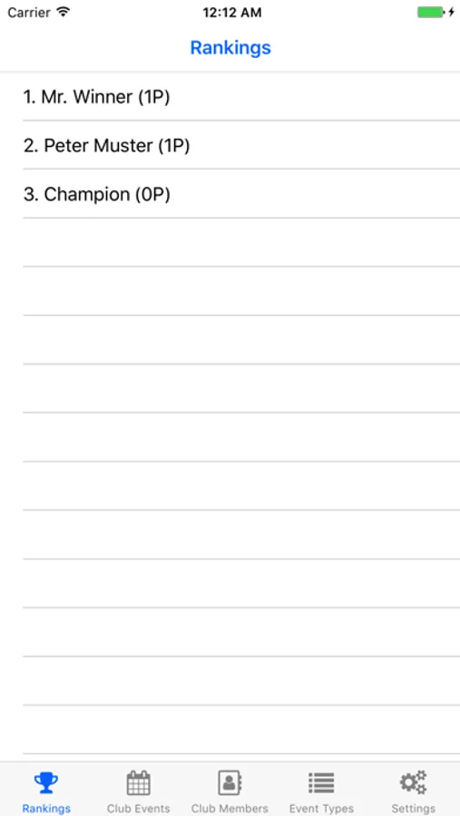 Different event types can be created in order to give more or less points. There is always an updated ranking list of all members.