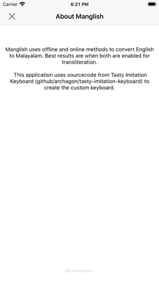 Manglish is a transliteration keyboard that allows users to type in English and convert that to Malayalam. Just type as you speak Malayalam and Manglish will convert that to Malayalam. Manglish provides offline transliteration also so you don't have to worry even if there is no internet.