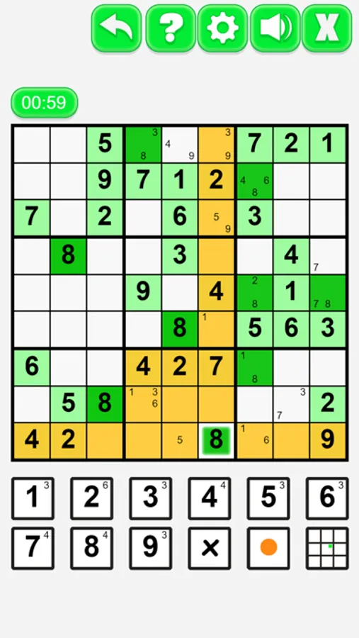 -“NUMBER FIRST” MODE: Select first the number you want to enter, then click the cell you want to fill in.