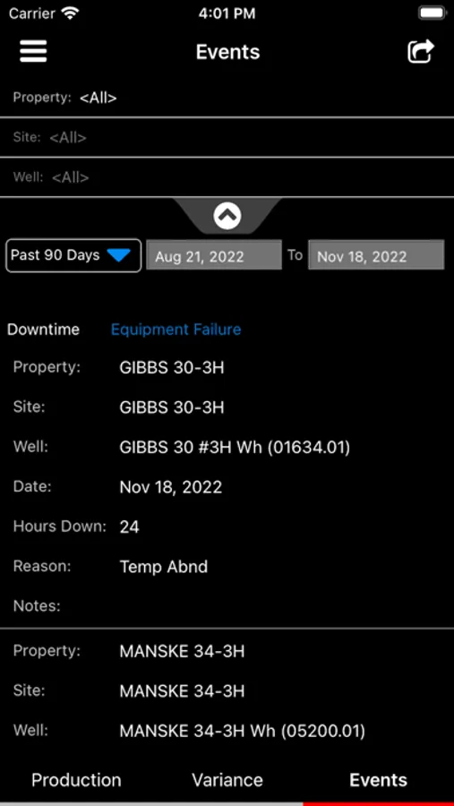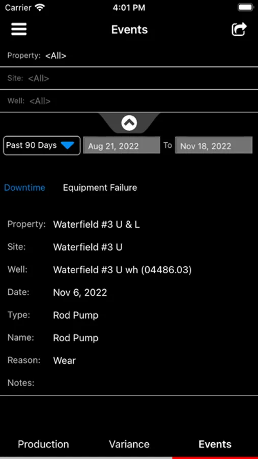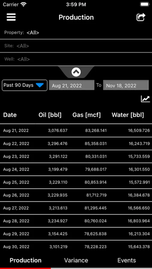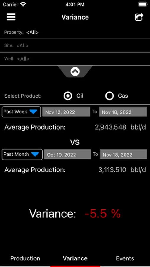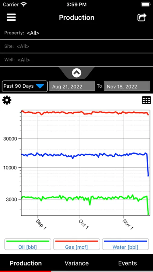 S&P Global FieldDIRECT® users can view their production from the project, site, and well levels in a table or chart view. The production and various data sets related to production can be graphed on a linear or log scale. Variance can be calculated at all levels based on user set timeframes. Downtime records and Equipment Failure records can also be viewed at all levels. The app allows S&P Global FieldDIRECT® users to view the pertinent production information regarding certain wells or areas at their fingertips from anywhere they have cellular data coverage or access to WiFi.