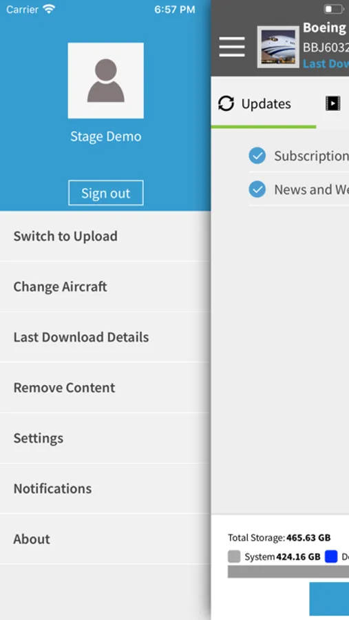 The Stage™ mobile sync app allows you to download Stage content from the cloud and wirelessly transfer that content to the Stage media server on your aircraft. The app provides a convenient option for Stage content loading when a PC and USB drive are not readily available. Once content has been loaded to the media server, passengers can enjoy the latest movies, TV shows, and more on their mobile device using the separate Stage client app.