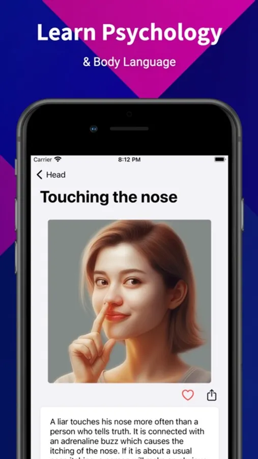 Scientists suppose every human lies up to 20 times per day and often they don’t even realize it. This app will help you better understand yourself through teaching you non-verbal actions.