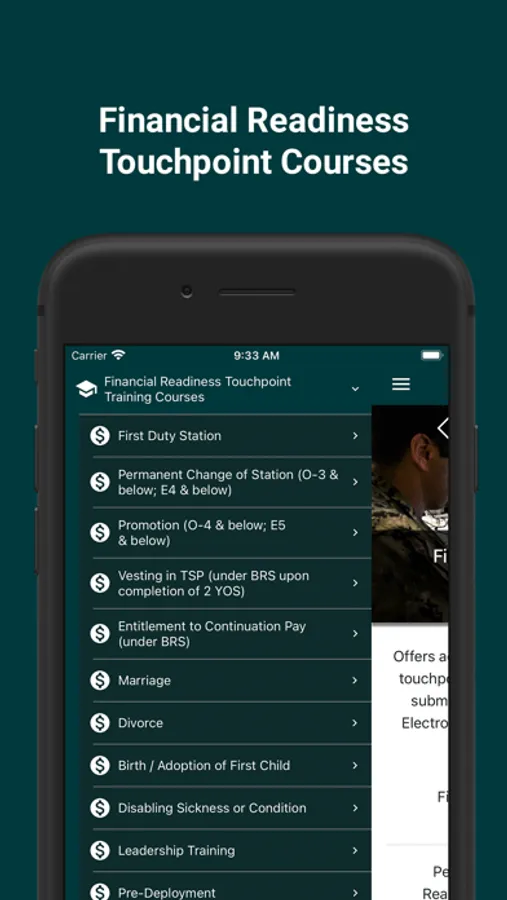 The FY16 National Defense Authorization Act (NDAA) made significant changes to the military retirement system and mandated that Navy personnel obtain financial literacy training at personal and professional touchpoints across the military lifecycle. This app supports that training via financial readiness touchpoint courses and a collection of in-app and online resources.