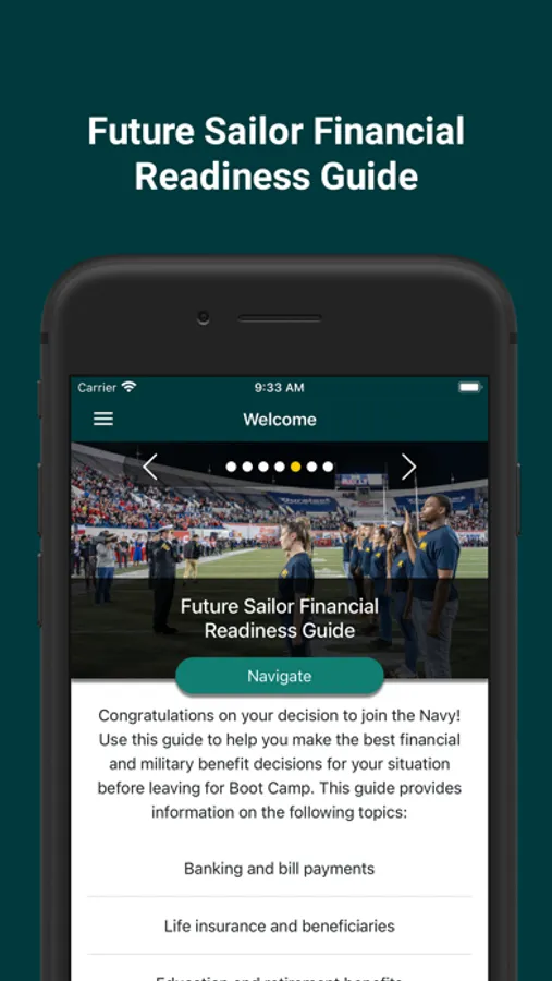-- Future Sailor Financial Readiness Guide – helps future Sailors financially prepare before leaving for Boot Camp. Provides information on banking and bill payments, life insurance and beneficiaries, education and retirement benefits, and information for military spouses.