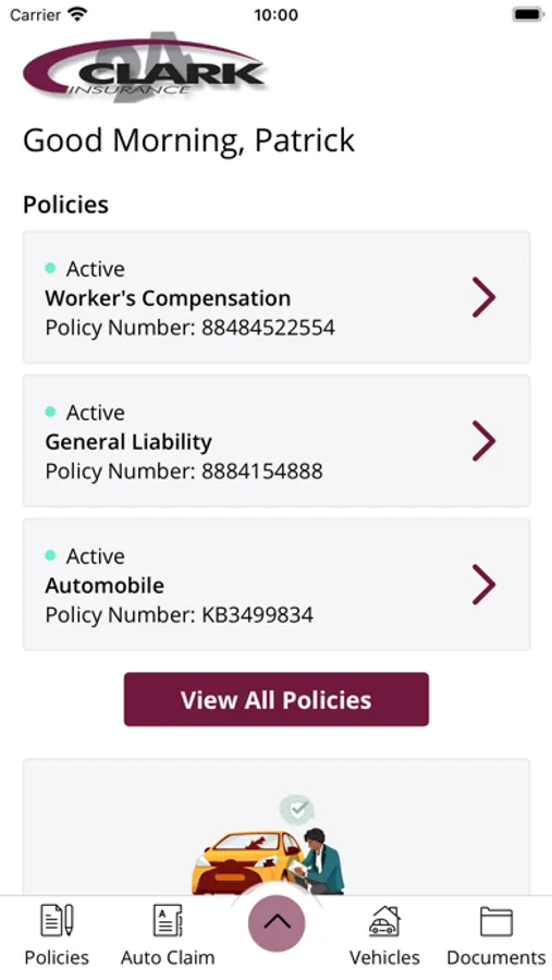 Clark24 provides a variety of services when it's convenient for you - report a claim, print an ID card or certificate, view policy documents, etc. In addition, you can speak with a representative to get questions answered. If you request policy changes online, you must confirm those changes the next business day with your agent here at Clark.