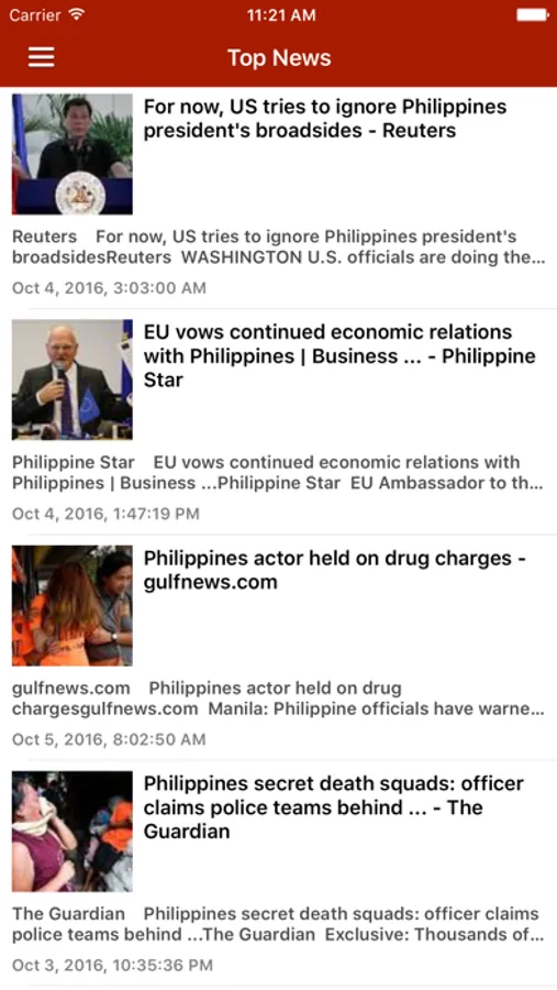 The latest Philippines News & Headlines today at your fingertips, with notifications support! Get the breaking news on the Philippines Drug War, celebrity updates, sports, typhoon warnings, and more. Individual news sections dedicated to top cities (Quezon City, Manila, Calooncan, etc) and provinces (Capiz, Cebu, Bhol, Palawan & more) will keep you informed about local happenings.