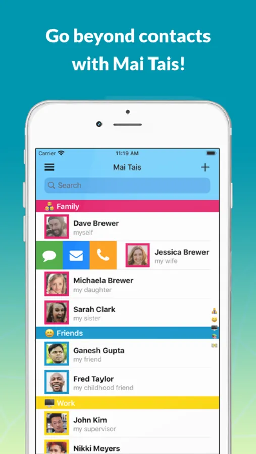 Mai Tais is a stand alone app on your device (no accounts, no servers, no logins needed), where you can enhance your contacts (called "mai tais" in the app) to do so much more: